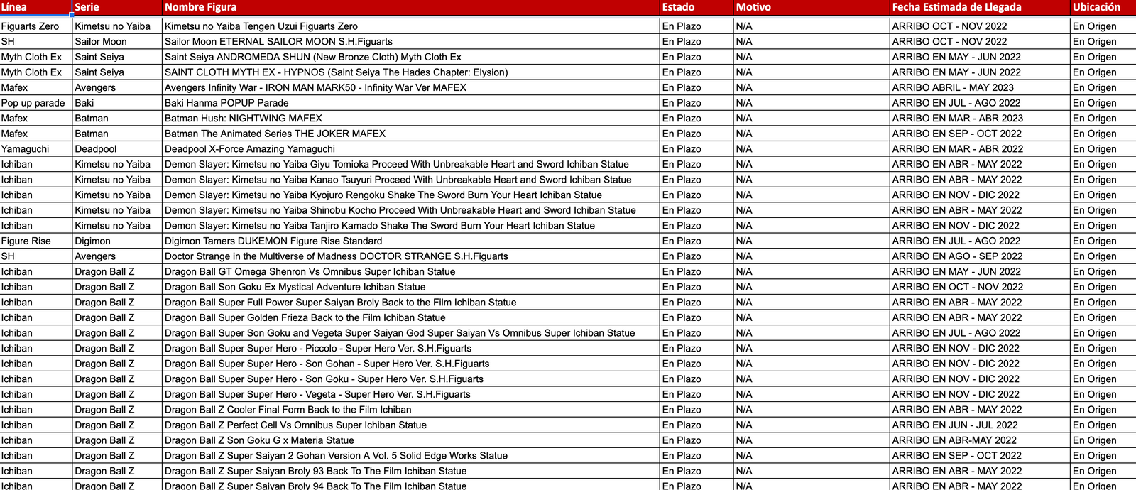Revisa esta sección periódicamente para saber si la preventa está en Plazo (y mantiene su fecha estimada de llegada), presenta Retraso (por postergación de Fecha de Salida por parte del fabricante, por demora en transporte logístico o por espera por más productos para ser enviada a Chile).